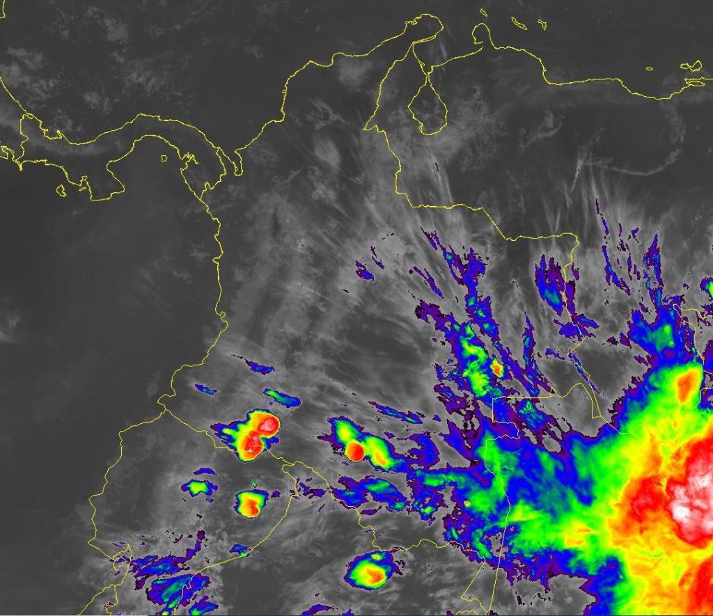 El ingreso de humedad por el suroriente del país genera inestabilidad atmosférica y lluvias moderadas a fuertes, algunas acompañadas de actividad eléctrica, en sectores de la Amazonia y Orinoquia, especialmente en los departamentos de Guainía, Vaupés, Guaviare, Amazonas, Caquetá y Putumayo. Condiciones de tiempo seco en las regiones Andina, Pacifica y Caribe. Vientos fuertes en la zona marítima del norte de Colombia con intensidades de entre 25 y 35 nudos (45 a 65 Km/h), debido a corriente en chorro.