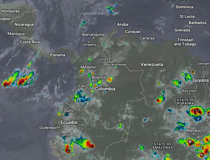 El ramal Pacífico de la Zona de Confluencia Intertropical en interacción con una Vaguada, un Sistema de Baja Presión, el ingreso de humedad por el sur – suroriente del país y procesos convectivos locales, favorecen condiciones inestables que generan lluvias ligeras a fuertes algunas acompañadas de actividad eléctrica en los departamentos de Cesar, Bolívar, Córdoba, Antioquia, Santanderes, Chocó, Valle del Cauca, Cauca, Nariño, Putumayo y Caquetá. Precipitaciones ocasionales y lluvias de menor intensidad en los departamentos de Huila, Tolima, Eje Cafetero, Cundinamarca, Meta, Boyacá, Casanare y Arauca.