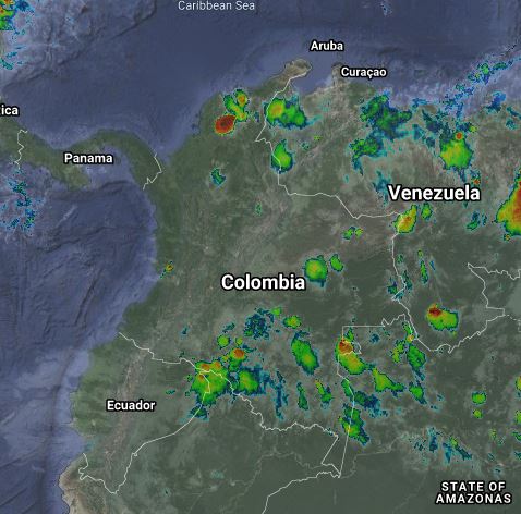 Procesos convectivos locales generan lluvias y algunas tormentas aisladas en sectores de Magdalena, Atlántico, Bolívar, Norte de Santander, Guainía, Vaupés, Guaviare, Amazonas, Caquetá y Putumayo. Precipitaciones de menor intensidad en Vichada, Meta, Cundinamarca, Antioquia y el Valle del Cauca.