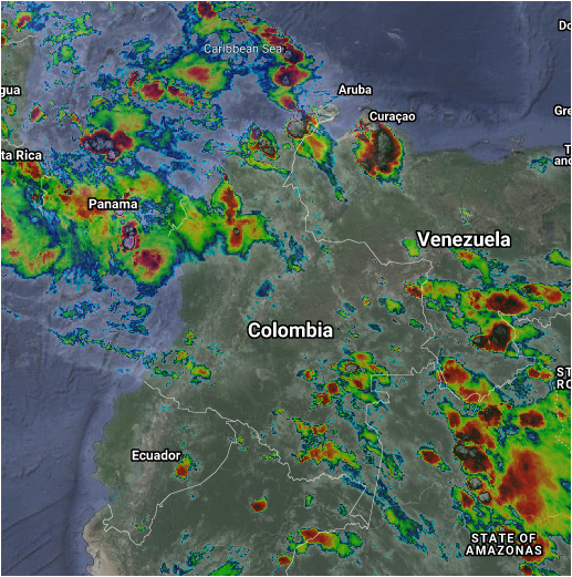 Lluvias moderadas a fuertes y tormentas en sectores del norte, centro y occidente del país, especialmente en los departamentos de La Guajira; Cesar, Magdalena, Atlántico, Bolívar, Sucre, Córdoba, Antioquia, Chocó, Caldas, Cauca y Nariño. Lluvias y tormentas aisladas en Amazonas, Caquetá, Vaupés, Guaviare, Guainía, Vichada Arauca, Boyacá, Santander y Norte de Santander.