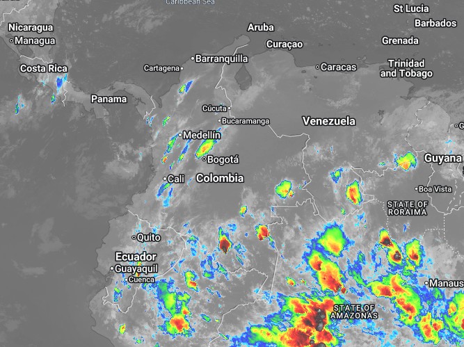 El ramal Pacífico de la Zona de Confluencia Intertropical en interacción con una Vaguada, un Sistema de Baja Presión, así como procesos convectivos locales favorecen condiciones inestables, que generan lluvias de ligeras a moderadas y algunas tormentas en sectores de los departamentos de Norte de Santander, Santander, Córdoba, Chocó, Valle del Cauca, Cauca, Nariño, Putumayo, Huila y Tolima Precipitaciones ocasionales y lluvias de menor intensidad en los departamentos de Amazonas, Antioquia, Arauca, Atlántico, Bolívar, Boyacá, Caldas, Caquetá, Casanare, Cesar, Cundinamarca, Guainía, Guaviare, La Guajira, Magdalena, Meta, Quindío, Risaralda, Sucre, Vaupés y Vichada.