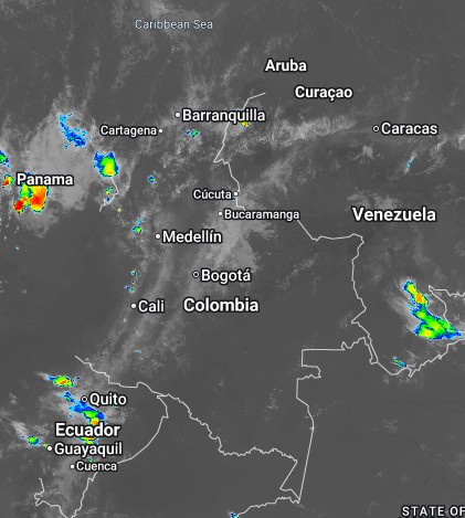 El ramal Pacífico de la Zona de Confluencia Intertropical en interacción con una Vaguada, un Sistema de Baja Presión y procesos convectivos locales favorecen condiciones inestables, que generan precipitaciones ocasionales en los departamentos de Santander, Vaupés y amazonas. Precipitaciones ocasionales y lluvias de menor intensidad en los departamentos de Antioquia, Cundinamarca, Guainía, Guaviare, La Guajira, Magdalena. Arauca, Atlántico, Bolívar, Boyacá, Caldas, Caquetá, Casanare, Cauca, Cesar, Chocó, Córdoba, Meta, Nariño, Norte de Santander, Putumayo, Quindío, Risaralda, Sucre, Valle del Cauca.