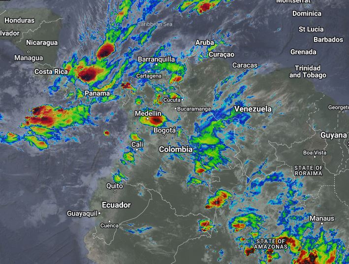 El ramal Pacífico de la Zona de Confluencia Intertropical en interacción con una Vaguada, un Sistema de Baja Presión, el ingreso de humedad por el Suroriente del país y procesos convectivos locales, favorecen condiciones inestables que generan lluvias ligeras a moderadas y algunas tormentas en sectores de los departamentos de Cesar, Magdalena Atlántico, Bolívar, Sucre, Córdoba, Santanderes, Antioquia, Chocó, Valle del Cauca, Cauca, Nariño, Amazonas, Vaupés, Guaviare, Guainía y Vichada. Precipitaciones ocasionales y lluvias de menor intensidad en los departamentos de Guajira, Arauca, Casanare, Boyacá, Cundinamarca, Eje Cafetero, Tolima, Huila, Caquetá y Meta.