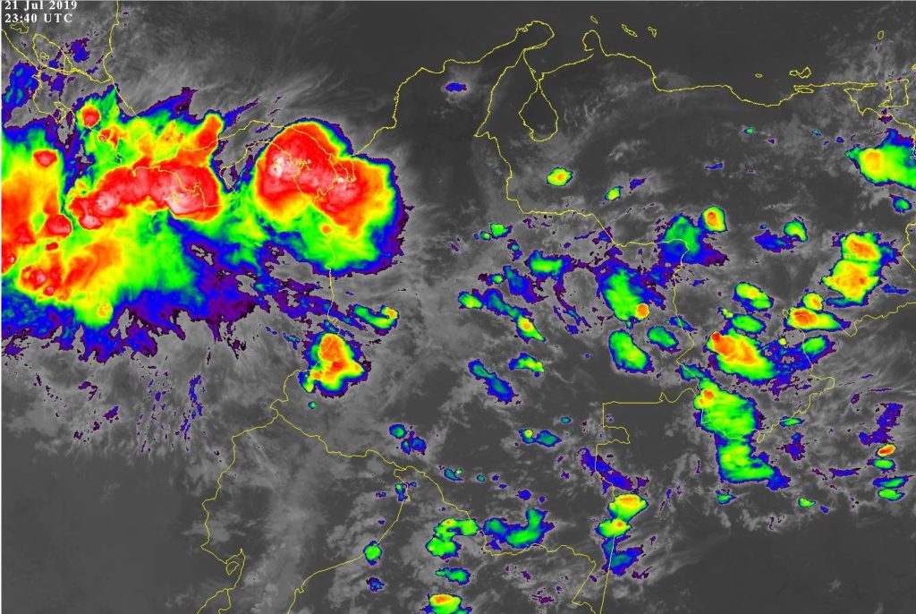 El paso de una Onda Tropical del Este en interacción con la zona de confluencia intertropical, favorece condiciones inestables en algunos sectores del país generando humedad y nubosidad, produciendo lluvias de variada intensidad que afectan varias partes del territorio nacional. Para esta noche se prevén lluvias moderadas a fuertes en los departamentos de Nariño, Cauca, Chocó, Córdoba, Antioquia, Sucre, Vichada, Guainía, Guaviare, Casanare, Meta y Amazonas. Lluvias de menor intensidad en Boyacá, Cundinamarca, Arauca, Valle y Santander.