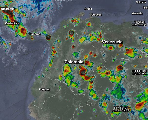 Condiciones inestables en gran parte del país debido a la interacción de la Zona de Confluencia Intertropical con una Vaguada en el Pacifico y al ingreso de humedad desde el oriente del país por el ingreso de una Onda Tropical del Este. Para esta noche se prevén lluvias de variada intensidad y tormentas en sectores de los departamentos de Córdoba, Sucre, Bolívar, Antioquia, Chocó, Santander, Arauca, Casanare, Vichada, Guainía, Guaviare, Amazonas, Putumayo, Nariño, Cauca, valle del Cauca y Eje Cafetero. Precipitaciones ocasionales y lluvias de menor intensidad en Magdalena, Cesar, Norte de Santander, Boyacá, Cundinamarca, Tolima, Huila, Meta, Guaviare y Caquetá.