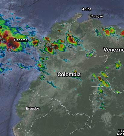 El ramal pacifico de la Zona de Confluencia Intertropical en interacción con una vaguada y algunos procesos convectivos locales generan lluvias moderadas a fuertes y algunas tormentas en sectores de los departamentos de Magdalena, Cesar, Norte de Santander, Santander, Córdoba, Antioquia, Chocó, Valle del Cauca y Cauca. Precipitaciones de menor intensidad en Boyacá, Cundinamarca, Meta, Caquetá, Putumayo, Casanare y Guainía. Se mantiene activa corriente el chorro en el mar caribe con vientos entre 20 y 30 nudos (36 a 54 km/h).