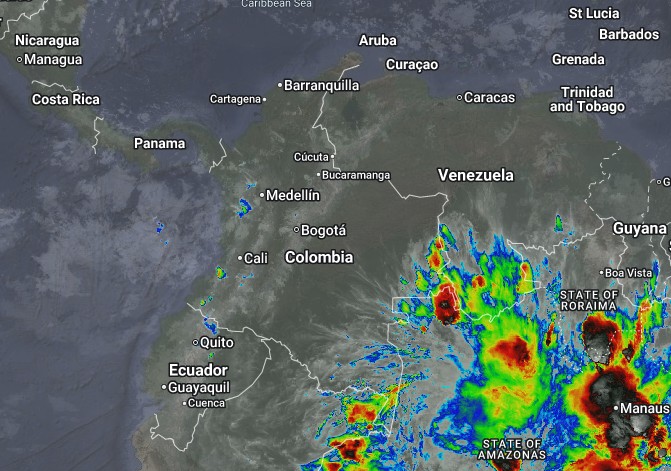 El ramal Pacífico de la Zona de Confluencia Intertropical en interacción con una Vaguada, un Sistema de Baja Presión, así como procesos convectivos locales favorecen condiciones inestables, que generan lluvias a ligeras a moderadas y algunas tormentas en sectores de los departamentos de Putumayo, Nariño, Valle del Cauca, Cauca, Choco, Tolima y Córdoba. Precipitaciones ocasionales y lluvias de menor intensidad en los departamentos de Guajira, Atlántico, Sucre, Bolívar, Magdalena, Cesar, Arauca, Casanare. Meta, Vaupés, Caquetá, Guainía, Amazonas, Santanderes, Eje Cafetero, Antioquia, Boyacá, Cundinamarca, Huila, Amazonas Guaviare y Vaupés.