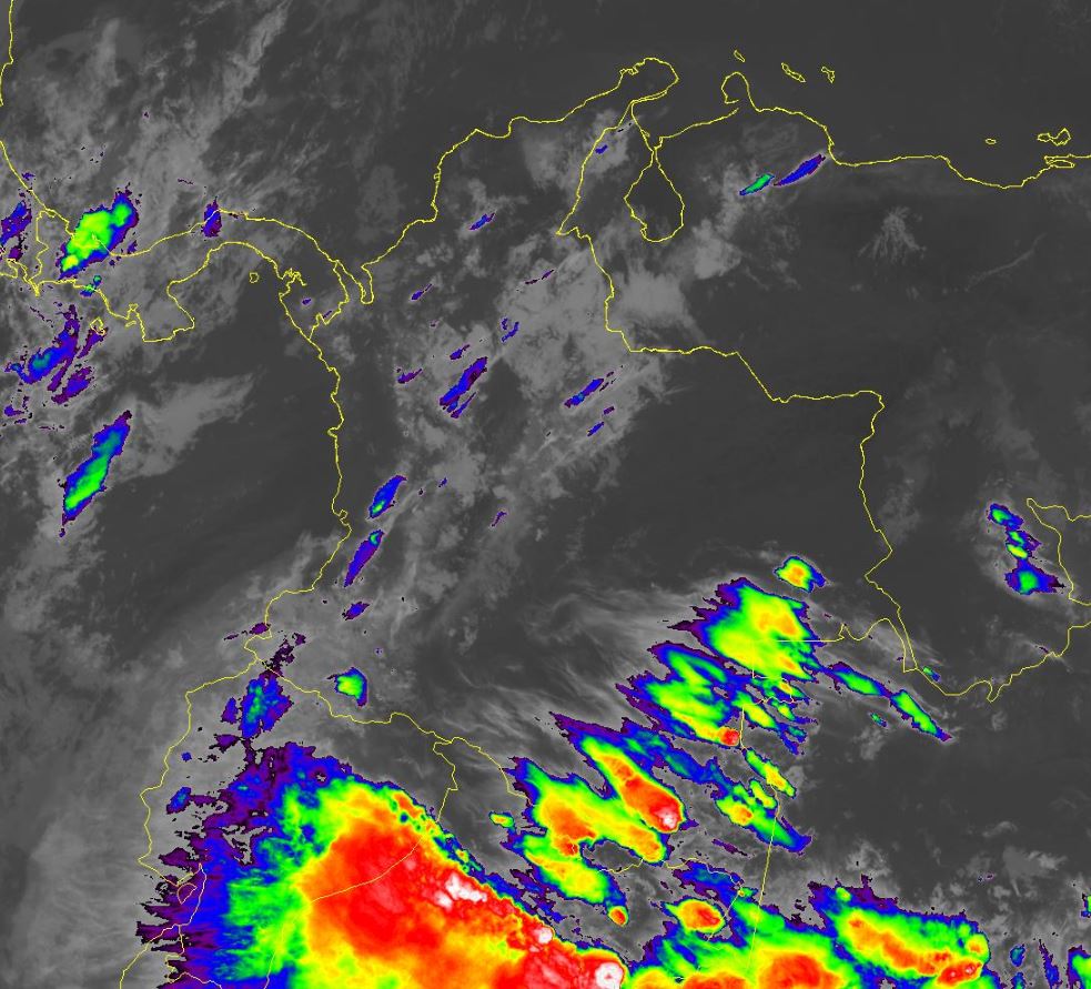 Condiciones de tiempo seco en gran parte de las regiones Caribe y Andina. El ingreso de humedad desde el oriente genera algunas lluvias moderadas a fuertes y tormentas en Guainía, Vaupés, Guaviare, Amazonas, Caquetá y Putumayo. Precipitaciones de menor intensidad en Nariño, Cauca, Valle del Cauca, Antioquia; eje Cafetero, Santander y Boyacá.