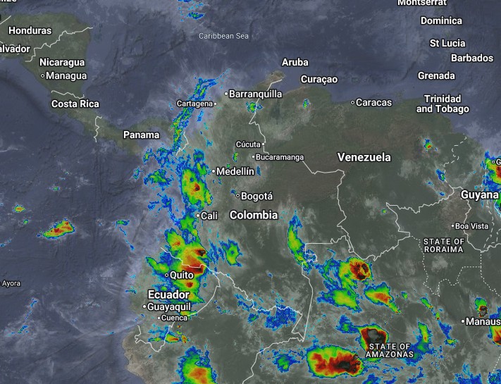 El ramal Pacífico de la Zona de Confluencia Intertropical en interacción con una Vaguada y procesos convectivos locales favorecen condiciones inestables, que generan lluvias sectorizadas a ligeras y algunas tormentas en sectores de los departamentos de Amazonas, Putumayo, Cauca, Choco, Valle del Cauca, Huila, Cundinamarca, Boyacá, Antioquia, Bolívar, Sucre y Santander. Precipitaciones ocasionales y lluvias de menor intensidad en los departamentos de Arauca, Atlántico, Caldas, Caquetá, Casanare, Cesar, Córdoba, Guainía, Guaviare, La Guajira, Magdalena, Meta, Nariño, Norte de Santander, Quindío, Risaralda, Tolima, Vaupés y Vichada.