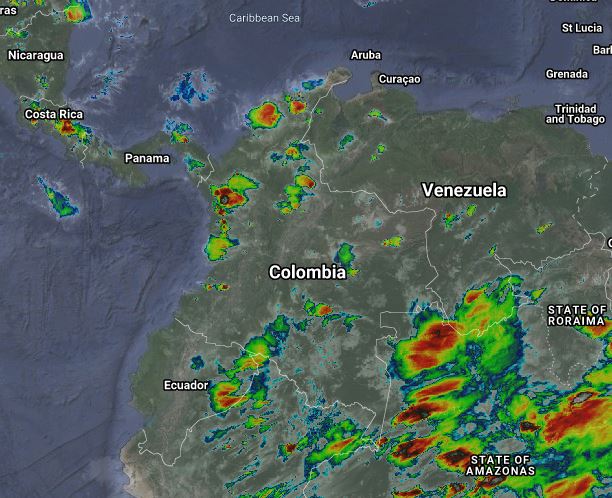 Condiciones inestables en algunos sectores del país debido a la interacción de la Zona de Confluencia Intertropical con una Vaguada en el Pacifico, al ingreso de humedad desde el suroriente del país. Para esta noche se prevén lluvias de variada intensidad y tormentas en sectores de los departamentos de Córdoba, Bolívar, Santander, Antioquia, Chocó, Valle del Cauca, Eje Cafetero, Tolima, Meta, Caquetá, Putumayo, Amazonas, Vaupés, Guainía y Vichada. Precipitaciones ocasionales y lluvias de menor intensidad en Sucre, Boyacá, Cundinamarca, Huila, Cauca, Nariño, Guaviare, Casanare y Arauca.
