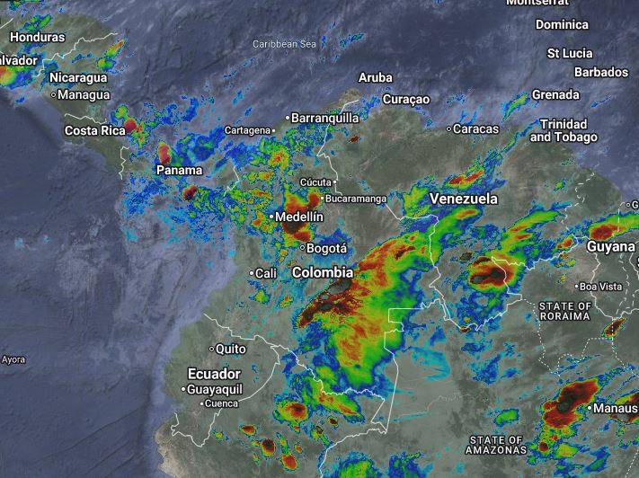 El ramal Pacífico de la Zona de Confluencia Intertropical en interacción con una Vaguada, un Sistema de Baja Presión, así como procesos convectivos locales favorecen condiciones inestables, que generan lluvias ligeras a moderadas y algunas tormentas en sectores de los departamentos de Antioquia, Santander, Boyacá, Cundinamarca, Eje Cafetero, Chocó, Valle del Cauca, Cauca, Nariño, Putumayo, Caquetá, Guaviare, Meta, Guainía y Amazonas. Precipitaciones ocasionales y lluvias de menor intensidad en los departamentos de Cesar, Guajira, Magdalena, Bolívar, Sucre, Córdoba, Norte de Santander, Arauca, Casanare, Tolima, Huila y Vaupés.