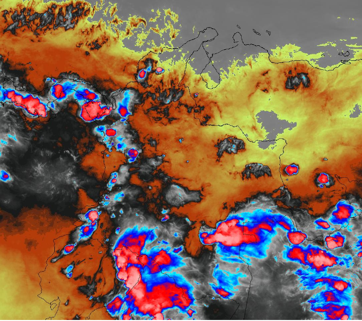 Inestabilidad atmosférica en el occidente, sur y suroriente del país. Lluvias de variada intensidad y tormentas en sectores de los departamentos de Sucre, Córdoba, Antioquia, Chocó, Cauca, Nariño, Putumayo, Caquetá, Vaupés y Guaviare. Precipitaciones de menor intensidad en Huila, Tolima, Eje Cafetero, Cundinamarca y Boyacá.