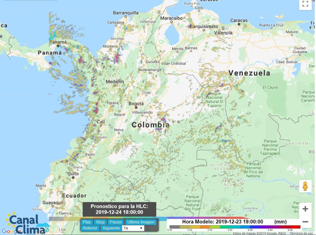 Para esta noche se prevén condiciones inestables en algunos sectores debido al ingreso de humedad por el suroriente del país y a la interacción de la Zona de Confluencia intertropical con una Vaguada. Lluvias moderadas a fuertes y tormentas en los departamentos de Choco, Cauca, Valle del Cauca, Eje Cafetero, Antioquia, Santander, sur de Bolívar, Meta, Tolima, Putumayo y Caquetá. Precipitaciones ocasionales y lluvias de menor intensidad en Nariño, Huila, Amazonas, Guaviare, Vaupés, Guainía, Casanare, Arauca, Boyacá, Norte de Santander, Córdoba y Sucre.