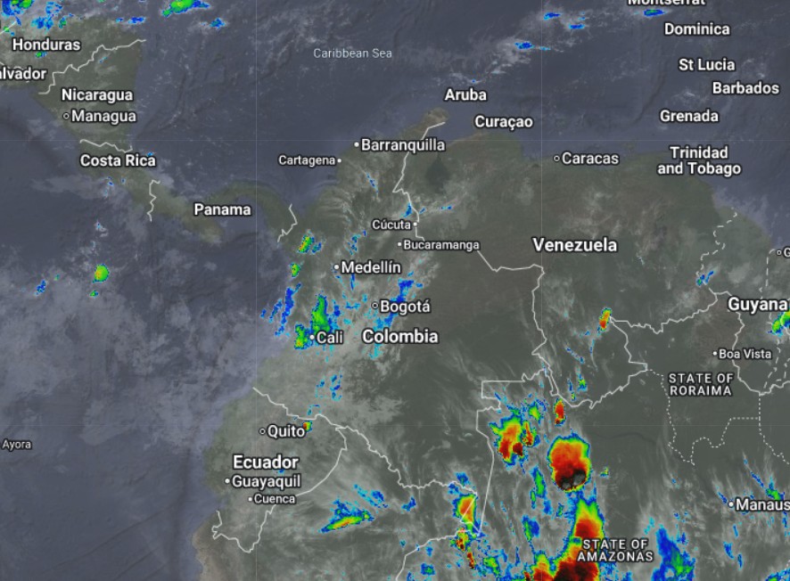 El ramal Pacífico de la Zona de Confluencia Intertropical en interacción con una Vaguada, un Sistema de Baja Presión, así como procesos convectivos locales favorecen condiciones inestables, que generan lluvias a ligeras a moderadas y algunas tormentas en sectores de los departamentos de Tolima, Nariño, Valle del Cauca, Cauca y Choco. Precipitaciones ocasionales y lluvias de menor intensidad en los departamentos de Guajira, Atlántico, Sucre, Bolívar, Magdalena, Cesar, Córdoba, Arauca, Casanare, Meta, Guainía, Amazonas, Caquetá, Putumayo, Santanderes, Eje Cafetero, Antioquia, Boyacá, Cundinamarca y Huila.