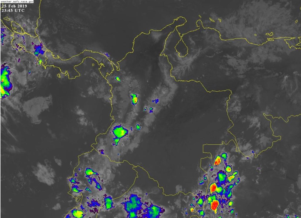 Condiciones inestables, humedad y nubosidad que favorecen la presencia de lluvias de variada intensidad en sectores de los departamentos Antioquia, Chocó, Boyacá, Cundinamarca, Caldas, Quindío, Risaralda, Valle del Cauca, Cauca, Nariño, Amazonas, Vaupés y Guainía. Precipitaciones de menor intensidad en sectores de Córdoba, Santander y Tolima,