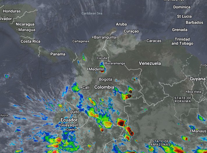 El ramal Pacífico de la Zona de Confluencia Intertropical en interacción con una Vaguada, un Sistema de Baja Presión, así como procesos convectivos locales favorecen condiciones inestables, que generan lluvias de variada intensidad y algunas tormentas en sectores de los departamentos de Amazonas, Vaupés, Nariño, Valle del Cauca, Santander, Boyacá, Tolima, Choco, Risaralda y Caldas. Precipitaciones ocasionales y lluvias de menor intensidad en los departamentos Antioquia, Arauca, Atlántico, Bolívar, Caquetá, Casanare, Cauca, Cesar, Córdoba, Cundinamarca, Guainía, Guaviare, Huila, La Guajira, Magdalena, Meta, Norte de Santander, Putumayo, Quindío, Sucre y Vichada.