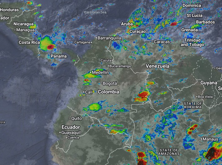El ramal Pacífico de la Zona de Confluencia Intertropical en interacción con una Vaguada, un Sistema de Baja Presión, así como procesos convectivos locales favorecen condiciones inestables, que generan lluvias ligeras a moderadas y algunas tormentas en sectores de los departamentos de Córdoba, Valle del Cauca, Putumayo, Caquetá, Guaviare, Meta, Casanare, Arauca, Guainía, Vaupés y Amazonas. Precipitaciones ocasionales y lluvias de menor intensidad en los departamentos de La Guajira, Atlántico, Cesar, Antioquia, Eje Cafetero, Chocó, Cauca, Nariño, Santander, Boyacá, Cundinamarca, Tolima y Huila.