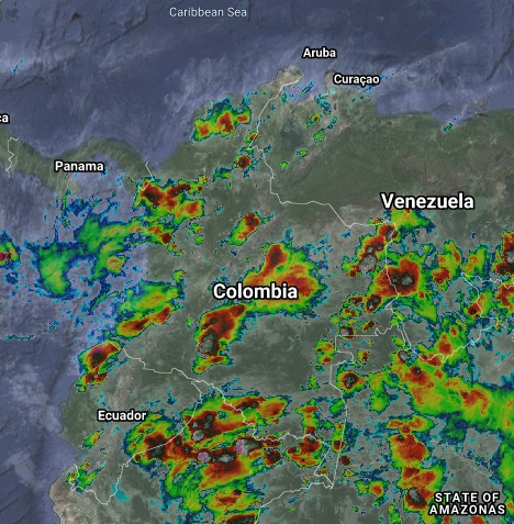 Condiciones de cielo nublado en gran parte del territorio nacional. Lluvias moderadas a fuertes y tormentas en Meta, Casanare, Arauca, Vichada, Guainía, Guaviare, Vaupés, inestables en el oriente, sur y suroccidente del país, lluvias moderadas a fuertes, algunas acompañadas de actividad eléctrica en sectores de Vichada, Guainía, Vaupés, Amazonas, Caquetá, Nariño, Huila, Cauca, Valle del Cauca, Choco, Antioquia, Córdoba, Bolívar, Magdalena, Boyacá y Los Santanderes. Lluvias aisladas en Cundinamarca, Tolima y el Eje Cafetero.