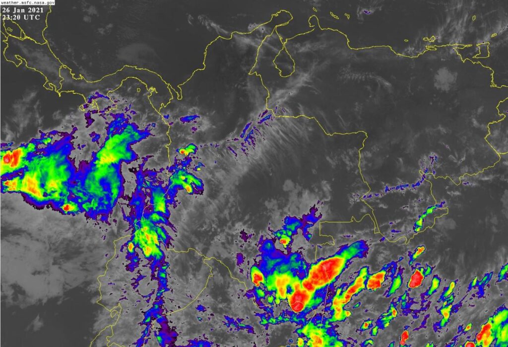 El ramal pacifico de la Zona de Confluencia Intertropical (ZCIT) en interacción con una Vaguada en el Pacífico, favorece condiciones inestables aumentando la nubosidad generando de lluvias de variada intensidad en sectores de los departamentos de Nariño, Cauca, Valle del Cauca y Chocó. El ingreso de humedad por el suroriente del territorio nacional favorece la presencia de lluvias moderadas a fuertes en Amazonas, Vaupés, Caquetá y Putumayo. Procesos convectivos locales generan precipitaciones ocasionales y lluvias sectorizadas en Antioquia, Santander, Boyacá, Cundinamarca y Eje Cafetero.