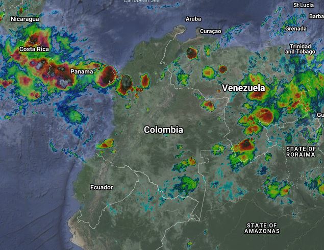 El ramal pacifico de la Zona de Confluencia Intertropical en interacción con una vaguada, el ingreso de humedad por el oriente del país y procesos convectivos locales, generan condiciones inestables en algunos sectores del territorio nacional. Se prevén lluvias de variada intensidad y algunas tormentas en los departamentos de Bolívar, Córdoba, Antioquia, Chocó, Valle del Cauca, Cauca, Nariño, Santander, Cundinamarca, Boyacá, Casanare, Vichada, Meta y Guainía. Precipitaciones ocasionales y lluvias de menor intensidad en Sucre, Arauca, Eje Cafetero, Tolima, Caquetá, Guaviare, Vaupés y Amazonas.