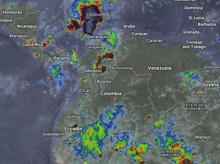 El ramal Pacífico de la Zona de Confluencia Intertropical en interacción con una Vaguada, el ingreso de humedad por el Suroriente del país y procesos convectivos locales, favorecen condiciones inestables que generan lluvias ligeras a moderadas y algunas tormentas en sectores de los departamentos de La Guajira, Cesar, Magdalena, Bolívar, Córdoba, Antioquia, Chocó, Eje Cafetero, Valle del Cauca, Cauca, Nariño, Putumayo, Caquetá, Meta, Guaviare, Guainía, Amazonas, Cundinamarca, Boyacá y Santanderes. Precipitaciones ocasionales y lluvias de menor intensidad en los departamentos de Sucre, Huila, Tolima, Casanare, Arauca y Vichada.
