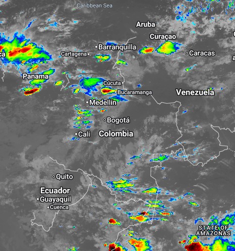 El ramal Pacífico de la Zona de Confluencia Intertropical en interacción con una Vaguada, un Sistema de Baja Presión, así como procesos convectivos locales favorecen condiciones inestables, que generan lluvias ligeras a moderadas y algunas tormentas en sectores de los departamentos de Santander, Boyacá Córdoba, Valle del Cauca, Guainía, Vaupés y Amazonas. Precipitaciones ocasionales y lluvias de menor intensidad en los departamentos de La Guajira, Atlántico, Cesar, Antioquia, Eje Cafetero, Chocó, Cauca, Nariño, Cundinamarca, Tolima y Huila, Putumayo, Caquetá, Guaviare, Meta, Casanare, Arauca,
