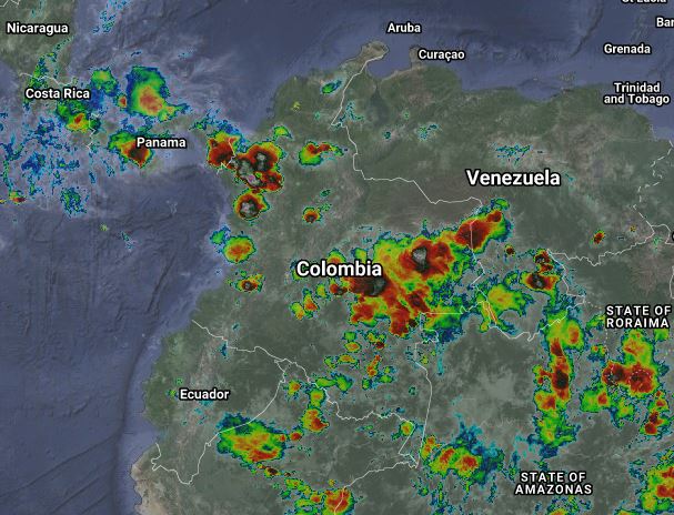 Para esta noche se presenta cielo nublado en gran parte del territorio nacional, debido a la interacción de la Zona de Confluencia Intertropical con una vaguada en el Pacifico y el ingreso de humedad por el oriente y sur del país, generando inestabilidad atmosférica, por lo que se prevén lluvias de variada intensidad y algunas tormentas en sectores de los departamentos de Chocó, Valle del Cauca, Cauca, Nariño, Putumayo, Caquetá, Amazonas, Vaupés, Guaviare, Guainía, Vichada, Meta, Antioquia, Eje Cafetero y Santander. Precipitaciones ocasionales y lluvias de menor intensidad en Boyacá, Cundinamarca, Tolima, Casanare y Arauca.