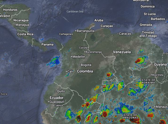 El ramal Pacífico de la Zona de Confluencia Intertropical en interacción con una Vaguada, un Sistema de Baja Presión, así como procesos convectivos locales favorecen condiciones inestables, que generan lluvias a ligeras a moderadas y algunas tormentas en sectores de los departamentos de Guainía, Vaupés y Amazonas. Precipitaciones ocasionales y lluvias de menor intensidad en los departamentos de Córdoba, Antioquia, Santanderes, Boyacá, Cundinamarca, Eje Cafetero, Chocó, Tolima, Huila, Valle del Cauca, Cauca, Nariño, Putumayo, Caquetá y Vichada.