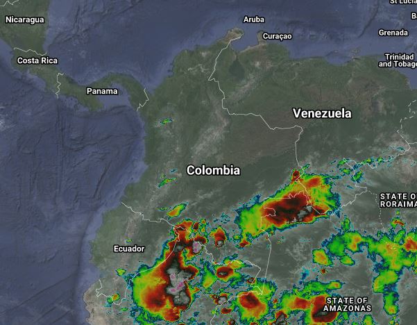 Para esta noche la imagen satelital nos muestra cielo entre parcial y mayormente nublado en gran parte del territorio nacional, se prevén condiciones de tiempo seco en la región Caribe y de la Orinoquia, lluvias moderadas a fuertes en los departamentos de Antioquia, Santander, Choco, Valle del Cauca, Putumayo, Caquetá, Amazonas, Guaviare y Guainía, precipitaciones ocasionales y lluvias sectorizadas en Norte de Santander, Boyacá, Cundinamarca, Eje Cafetero, Cauca, Nariño, Tolima, Huila y Guaviare.