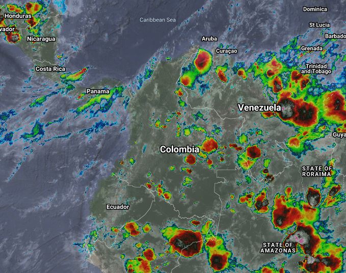 El ramal pacifico de la Zona de Confluencia Intertropical en interacción con una vaguada, el paso de Ondas Tropicales del Este y procesos convectivos locales, favorecen condiciones inestables en gran parte del territorio nacional, probabilidad de lluvias de variada intensidad y algunas tormentas en sectores de los departamentos de La Guajira, Cesar, Norte de Santander, Santander, Bolívar, Antioquia, Chocó, Arauca, Casanare, Vichada, Meta, Guaviare, Guainía, Vaupés y Amazonas. Precipitaciones ocasionales y lluvias de menor intensidad en Córdoba, Sucre, Eje Cafetero, Cundinamarca, Boyacá, Tolima, Huila, Valle del Cauca, Cauca, Nariño, Putumayo y Caquetá.