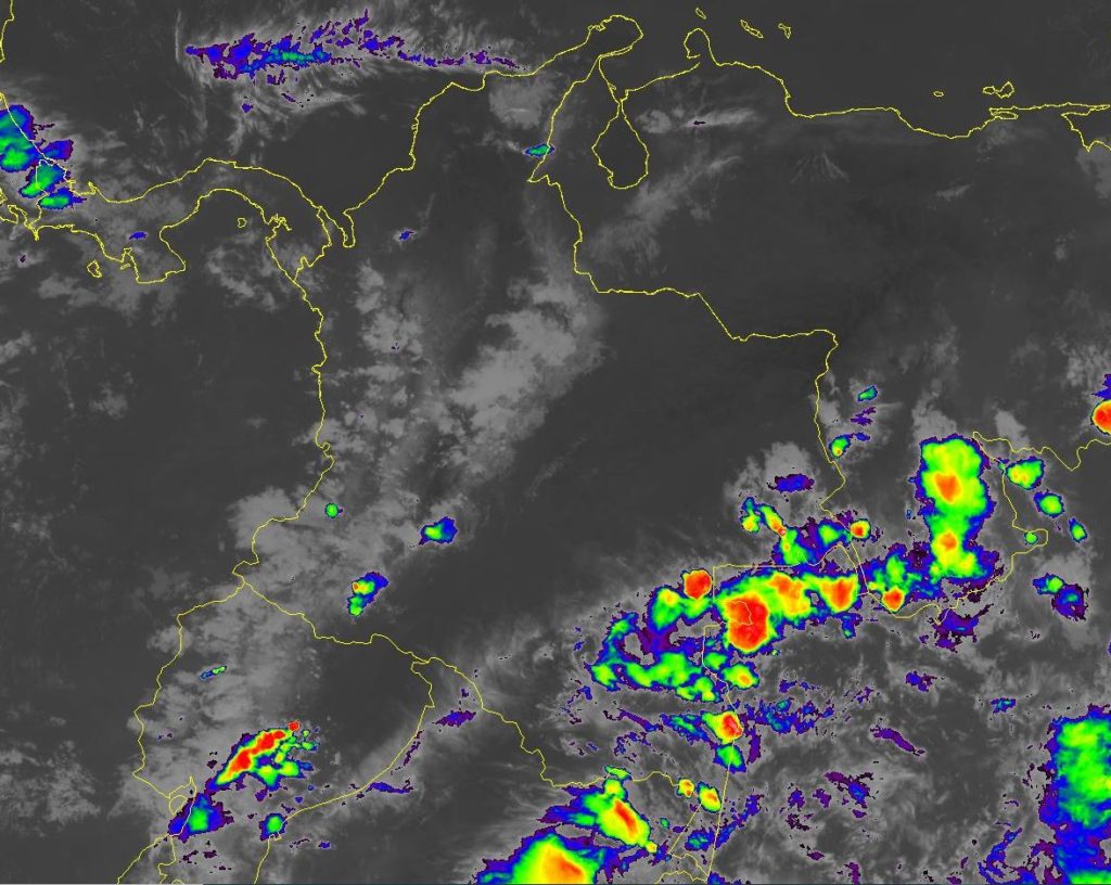 El ingreso de humedad desde el suroriente genera lluvias moderadas a fuertes y algunas tormentas en sectores del sur y suroriente del país, especialmente en Cauca, Nariño, putumayo, Caquetá, Amazonas, Vaupés, Guaviare y Guainía. Lluvias aisladas en Antioquia, Eje Cafetero, Cundinamarca, Boyacá y Santander.
