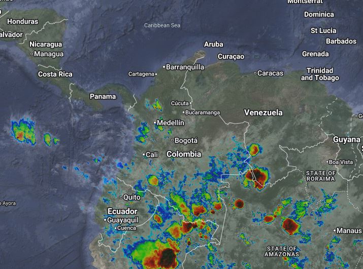 El ramal Pacífico de la Zona de Confluencia Intertropical en interacción con una Vaguada, un Sistema de Baja Presión, así como procesos convectivos locales favorecen condiciones inestables, que generan lluvias de ligeras a moderadas y algunas tormentas en sectores de los departamentos de Córdoba, Antioquia, Chocó, Eje Cafetero, Valle del Cauca, Cauca, Nariño, Putumayo, Caquetá, Huila, Tolima, Cundinamarca, Meta, Guaviare, Guainía, Vaupés y Amazonas. Precipitaciones ocasionales y lluvias de menor intensidad en los departamentos de Magdalena, Bolívar, Cesar, Santanderes, Boyacá, Arauca, Casanare, Vichada
