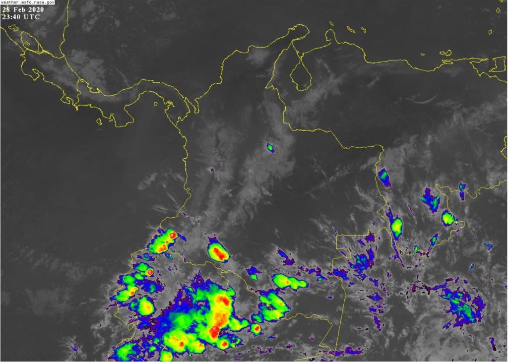 Para esta noche se prevén condiciones inestables en el sur y suroccidente del país. Lluvias de variada intensidad, algunas acompañadas de actividad eléctrica, en sectores de los departamentos de Caquetá, Putumayo, Nariño y Cauca. Precipitaciones ocasionales y lluvias de menor intensidad en Guainía y Vaupés.