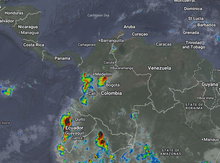 El ramal Pacífico de la Zona de Confluencia Intertropical en interacción con una Vaguada, un Sistema de Baja Presión, así como procesos convectivos locales favorecen condiciones inestables, que generan lluvias sectorizadas a moderadas y algunas tormentas en sectores de los departamentos de Santander, Boyacá, Cundinamarca, Eje Cafetero, Chocó, Valle del Cauca, Cauca, Vaupés y Amazonas. Precipitaciones ocasionales y lluvias de menor intensidad en los departamentos Bolívar, Norte de Santander, Antioquia, Tolima, Huila, Nariño, Caquetá y Putumayo.