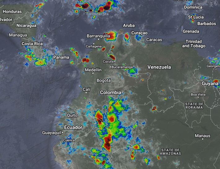 El ramal Pacífico de la Zona de Confluencia Intertropical en interacción con una Vaguada, un Sistema de Baja Presión, el ingreso de humedad por el Suroriente del país y procesos convectivos locales, favorecen condiciones inestables que generan lluvias ligeras a moderadas y algunas tormentas en sectores de los departamentos de La Guajira, Cesar, Magdalena, Bolívar, Córdoba, Antioquia, Santanderes, Putumayo, Caquetá, Guaviare, Vaupés y Amazonas. Precipitaciones ocasionales y lluvias de menor intensidad en los departamentos de Sucre, Chocó, Valle del Cauca, Cauca, Nariño, Huila, Tolima, Cundinamarca, Boyacá, Meta, Casanare, Arauca y Vichada.