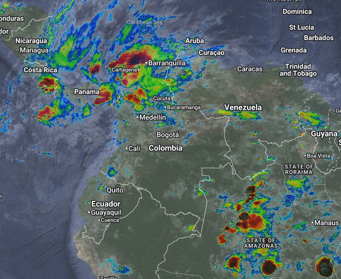 El ramal Pacífico de la Zona de Confluencia Intertropical en interacción con una Vaguada, un Sistema de Baja Presión, así como procesos convectivos locales favorecen condiciones inestables, que generan lluvias ligeras a moderadas y algunas tormentas en sectores de los departamentos de La Guajira, Magdalena, Cesar, Atlántico, Bolívar, Sucre, Córdoba, Antioquia, Chocó, Valle Del Cauca, Cauca, Nariño, Vichada, Guainía y Amazonas. Precipitaciones ocasionales y lluvias de menor intensidad en los departamentos de Los Santanderes, Boyacá, Cundinamarca, Tolima, Huila y Vaupés.