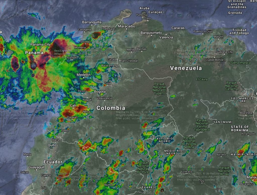 Para esta noche se prevén condiciones inestables en algunos sectores, debido a la interacción de la Zona de Confluencia intertropical con una Vaguada al occidente del país. Lluvias fuertes, y tormentas aisladas, en los departamentos de Chocó, Antioquia, Cundinamarca, Santander, Valle del Cauca, Cauca, Tolima, Huila, Eje Cafetero, Nariño, y Amazonas. Precipitaciones ocasionales y lluvias ligeras en Sucre, Bolívar, Meta y Caquetá.