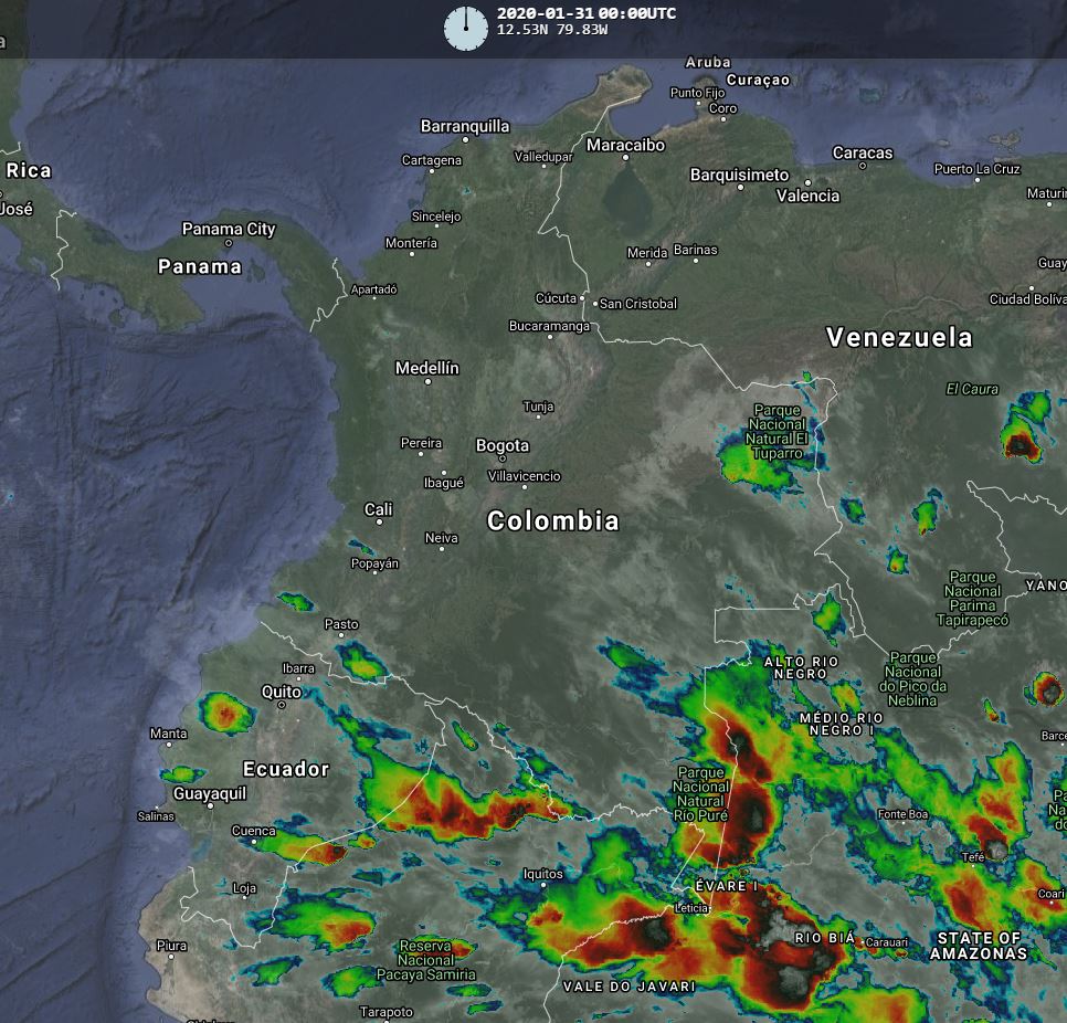 El ingreso de humedad por el sur y suroriente del país generan lluvias ligeras a moderadas, algunas acompañadas de actividad eléctrica, en sectores de los departamentos de Amazonas, Vaupés, Guaviare, Guainía, Putumayo y Caquetá. Lluvias aisladas en Chocó, Antioquia, Cauca y Nariño