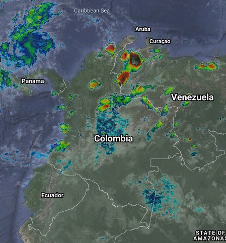 Procesos convectivos locales generan lluvias y tormentas aisladas en Magdalena, Cesar, Norte de Santander, Santander, Boyacá, Cundinamarca, Tolima, Chocó, Cauca, Nariño, Caquetá, Meta, Casanare, Arauca y Vichada. Precipitaciones de menor intensidad en el Eje Cafetero, Valle del Cauca, Putumayo, Amazonas y Guainía.