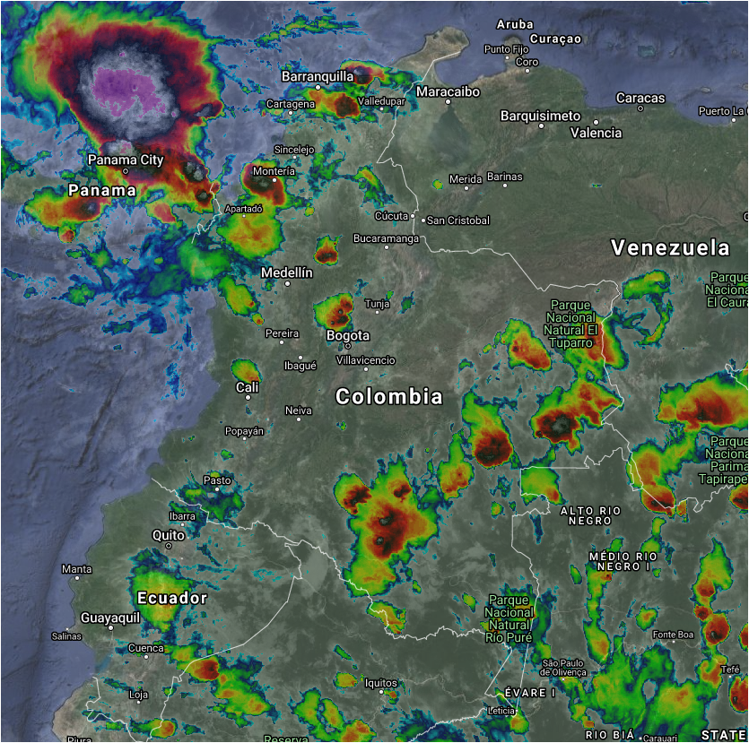 La interacción entre la Zona de confluencia intertropical y una Vaguada genera inestabilidad atmosférica en el norte, noroccidente y occidente del país. Lluvias de variada intensidad y tormentas en sectores de los departamentos de Magdalena, Atlántico, Bolívar, Sucre, Córdoba, Antioquia, Chocó, Santander, Boyacá, Cundinamarca, y el Eje Cafetero. El ingreso de humedad desde el oriente genera un incremento en la nubosidad, lluvias y algunas tormentas aisladas en Nariño, Putumayo, Caquetá, Amazonas, Vaupés, Guaviare, Guainía y Vichada. Precipitaciones de menor intensidad en Arauca, Casanare y Meta