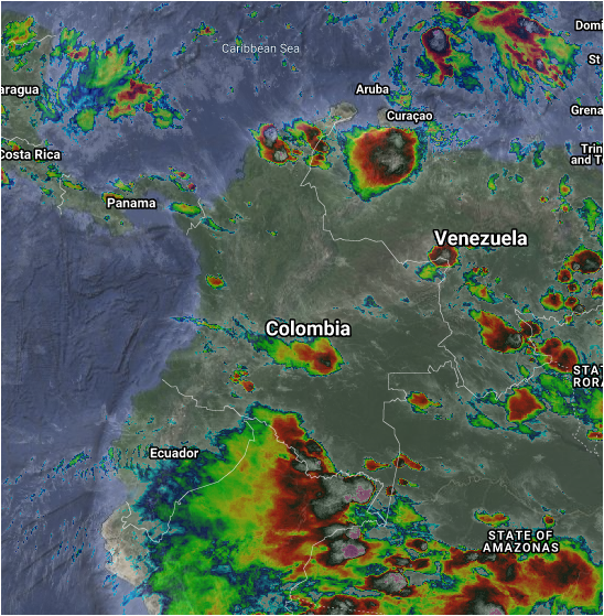El paso de una Onda Tropical del Este y su interacción con la Zona de Confluencia Intertropical genera condiciones inestables en gran parte del territorio nacional. Lluvias de variada intensidad y tormentas en sectores de los departamentos de Amazonas, Caquetá, Putumayo, Guaviare, Huila, Cauca, Valle del Cauca, Chocó, Atlántico, Magdalena, La Guajira, Cesar, Vichada y Guainía. Precipitaciones de menor intensidad en Arauca, Casanare, Córdoba, Antioquia, Boyacá, Cundinamarca y el Eje Cafetero.