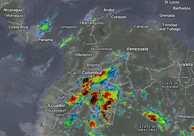El ramal Pacífico de la Zona de Confluencia Intertropical en interacción con una Vaguada, un Sistema de Baja Presión, así como procesos convectivos locales favorecen condiciones inestables, que generan lluvias a ligeras a moderadas y algunas tormentas en sectores de los departamentos de Antioquia, Córdoba, Eje cafetero, Choco, Valle del cauca, Cauca, Nariño, Putumayo, Amazonas, Vaupés, Guainía, Santander, Tolima y Huila. Precipitaciones ocasionales y lluvias de menor intensidad en los departamentos de Norte de Arauca, Atlántico, Bolívar, Boyacá, Caquetá, Casanare, Cesar, Cundinamarca, Guaviare, La Guajira, Magdalena, Meta, Norte de Santander, Sucre y Vichada.