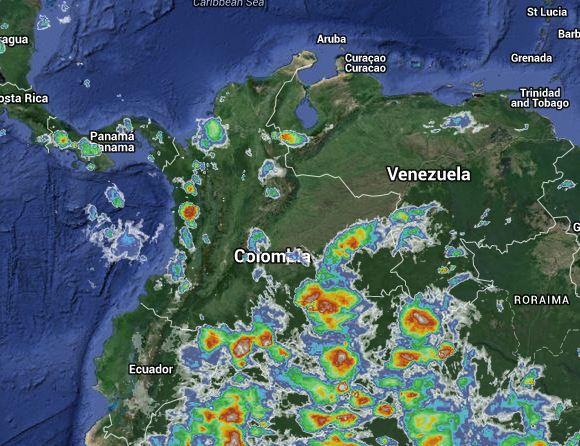 Nubosidad significativa afecta sectores del oriente y sur del territorio nacional. Lluvias de variada intensidad acompañadas de actividad eléctrica en sectores de los departamentos de Vichada, Meta, Vaupés, Caquetá, Amazonas y Putumayo, así como en sectores de los departamentos de Cauca, Valle del Cauca y Córdoba. Lluvias entre moderadas y fuertes sectorizadas en Norte de Santander, Santander, Bolívar, Antioquia, Chocó y Guaviare.