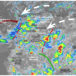 El ramal Pacífico de la Zona de Confluencia Intertropical en interacción con una Vaguada, un Sistema de Baja Presión, así como procesos convectivos locales favorecen condiciones inestables, que generan lluvias de ligeras a moderadas y algunas tormentas en sectores de los departamentos de Córdob...