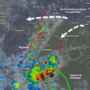 El ramal Pacífico de la Zona de Confluencia Intertropical en interacción con una Vaguada, un Sistema de Baja Presión, así como procesos convectivos locales favorecen condiciones inestables, que generan lluvias de variada intensidad y algunas tormentas en sectores de los departamentos de Choco, V...