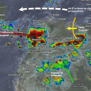 El ramal Pacífico de la Zona de Confluencia Intertropical en interacción con una Vaguada, un Sistema de Baja Presión, una Onda Tropical del Este, el ingreso de humedad por el Suroriente y Occidente del país, así como procesos convectivos locales favorecen condiciones inestables que generan lluv...