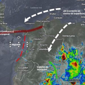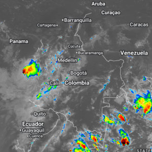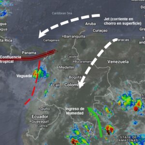 El ramal Pacífico de la Zona de Confluencia Intertropical en interacción con una Vaguada, un Sistema de Baja Presión, así como procesos convectivos locales favorecen condiciones inestables, que generan lluvias a ligeras a moderadas y algunas tormentas en sectores de los departamentos de Guainía...