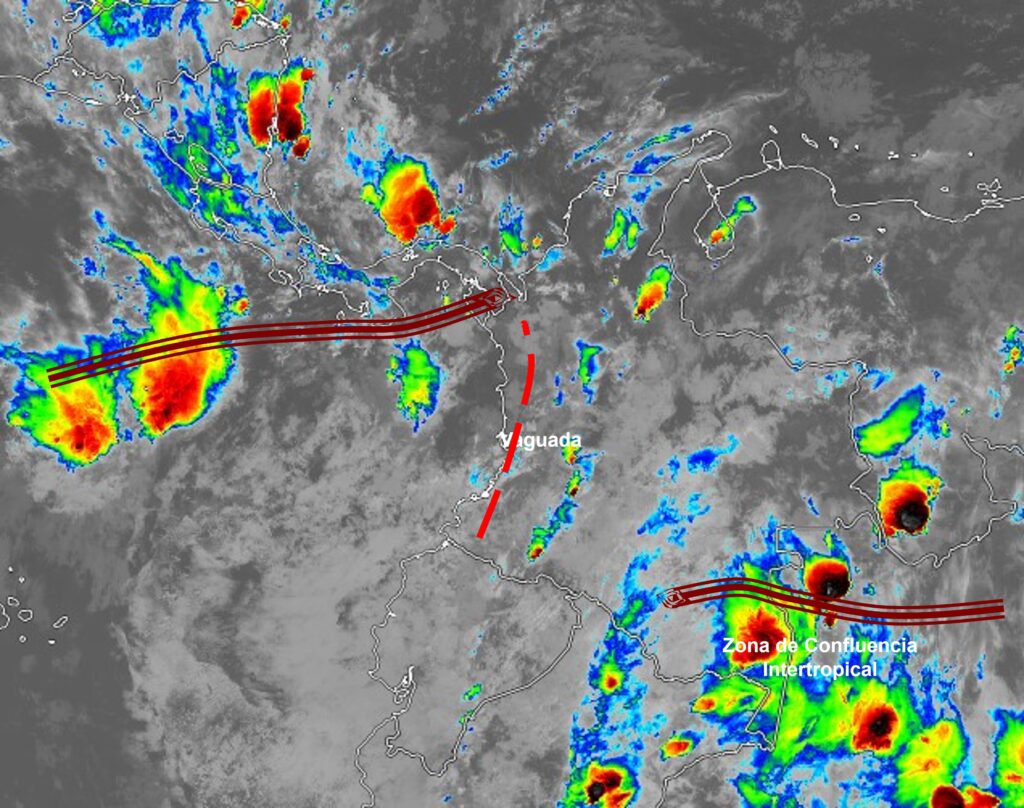El ramal Pacífico de la Zona de Confluencia Intertropical en interacción con una Vaguada, el ingreso de humedad por el Suroriente del país y procesos convectivos locales favorecen condiciones inestables que generan lluvias sectorizadas y algunas tormentas en sectores de los departamentos de Antioquia, Chocó, Eje Cafetero, Tolima, Valle del Cauca, Cauca, Nariño, Putumayo, Caquetá, Amazonas, Vaupés, Guainía, Cesar, Magdalena, Atlántico, Bolívar y Sucre. lluvias de menor intensidad en los departamentos de Córdoba, Santander y norte de Santander, Boyacá, Cundinamarca, Huila, Meta y Guaviare.