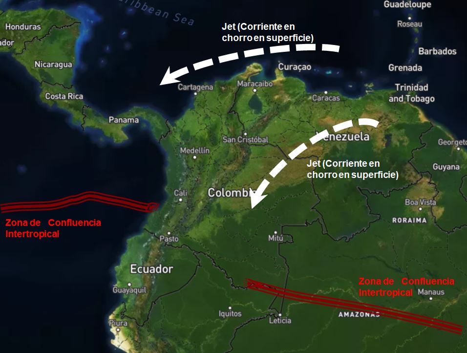 Prevalecen condiciones de tiempo seco y soleado para la mayor parte del territorio nacional, salvo algunas precipitaciones aisladas al suroriente, especialmente en sectores de los departamentos de Amazonas, Caquetá, Vaupés y Guainía. En la zona marítima del norte de Colombia, vientos fuertes con intensidades de hasta 35 nudos (79 Km/h).