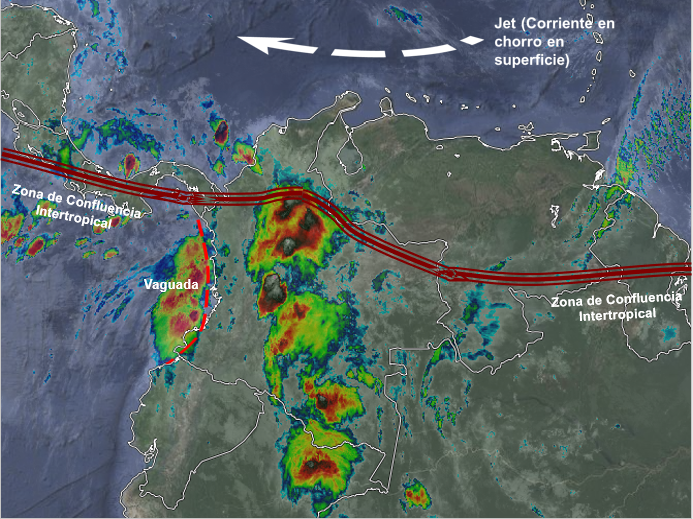 La interacción de la Zona de Confluencia Intertropical con una Vaguada en el pacífico continúa generando inestabilidad atmosférica, lluvias y algunas tormentas aisladas a lo largo del litoral y en sectores de los departamentos de Nariño, Cauca, Valle del Cauca y occidente del Chocó.